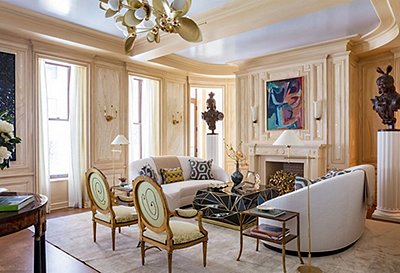 Designers Jason Oliver Nixon and John Loecke of Madcap Cottage took inspiration from the Royal Pavilion in Brighton, England, for their kitchen. The Belfast sink complements the vintage lanterns and the 18th-century wood table they converted into an island. Photo by Tony Vu.