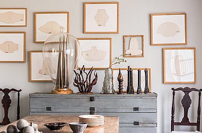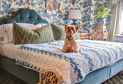 For next to the bed, think simple and sweet. Porcaro tucked a trio of peony blooms, and nothing else, into a low yellow vase for a result that’s calming, fragrant, and just plain lovely—perfect to wake up to.