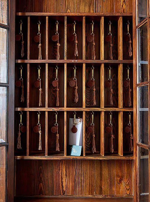 Guests are greeted at reception with a European-style key cabinet, a relic that provides atmosphere and a handy spot to sort mail.
