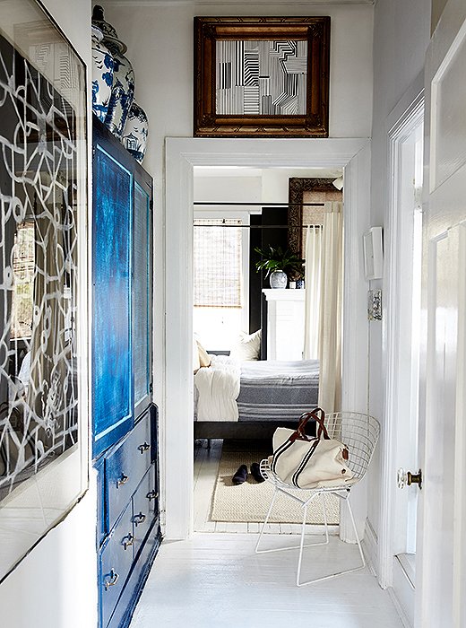 William painted the hallway’s built-in cabinet blue to make it feel more like an armoire. “It gave that space a purpose and added that statement that you needed in an area that would normally be blasé.”